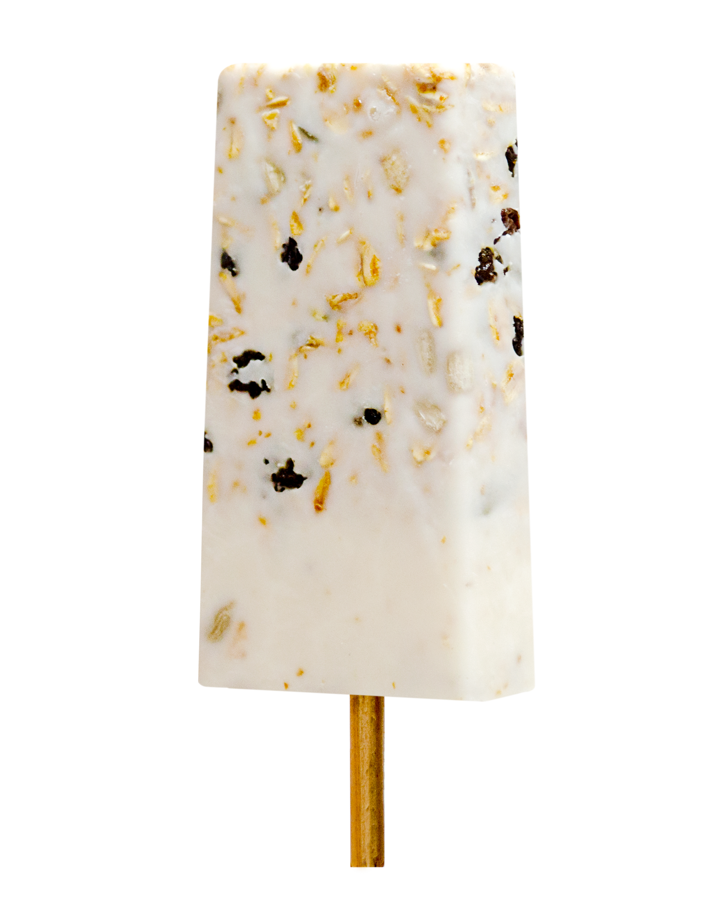 paleta a base de crema acompañada de granola, pasas, semilla de girasol entre otros.